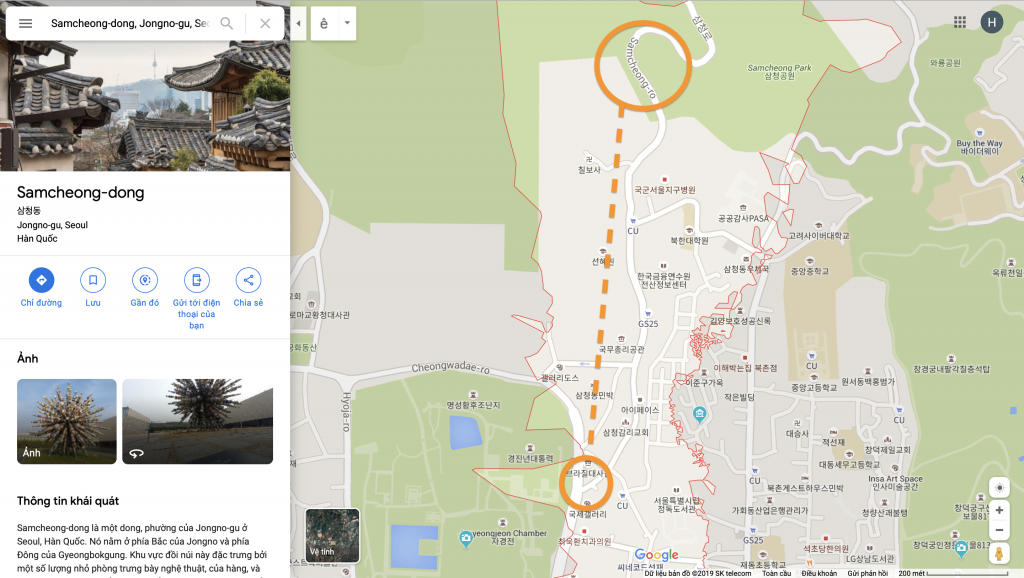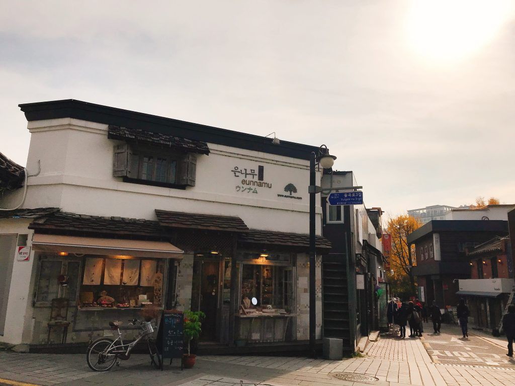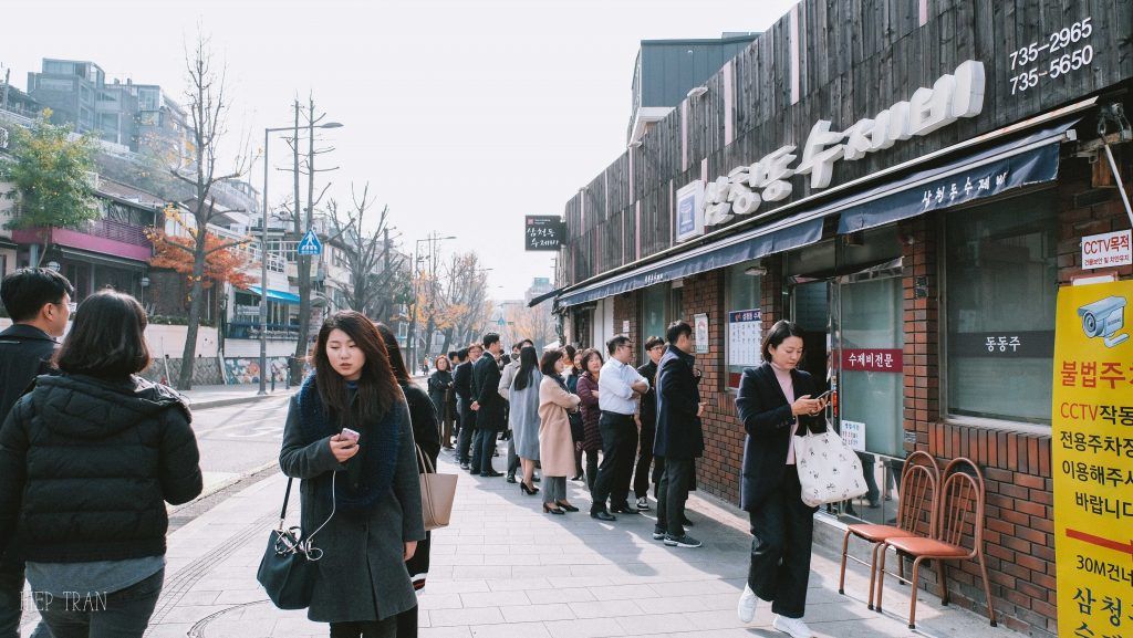 Nếu con đường đá cạnh cung Deoksugung nổi bật với những bốt điện thoại rất “Hàn” thì khi đến Samcheongdong, mình lại mê những đoạn đường cong cong, bên cạnh những cửa hàng quần áo hay quán cà phê rất xinh. Đi dạo ở Samcheongdong, bọn mình cứ chờ những cơn gió ngang qua, cuốn theo những chiếc lá rơi rụng. Thế đấy, bạn hãy đến Samcheongdong để một lần trải nghiệm nhé.